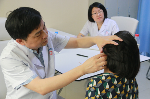 章庆国教授为小耳患者进行检查