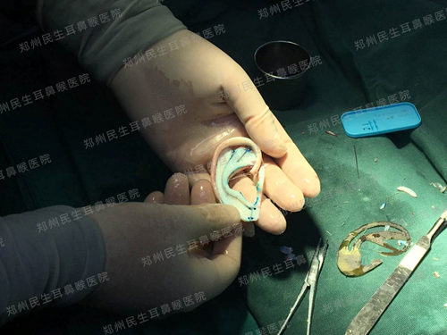 章庆国教授展示用肋软骨雕刻好的耳廓结构